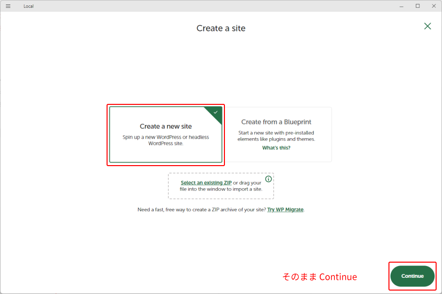 Local を起動すると下記の画面が出ると思うので、ここから始めていきます。