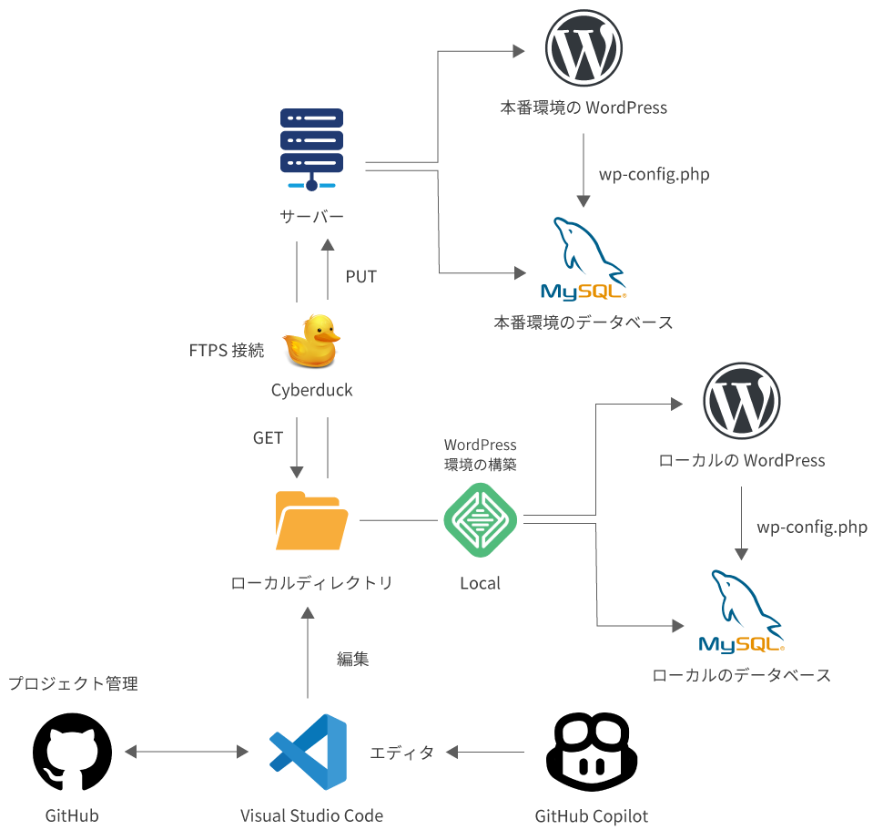 そのためエディタを VS Code、FTPS を Cyberduck で行います。両方フリーソフトです。