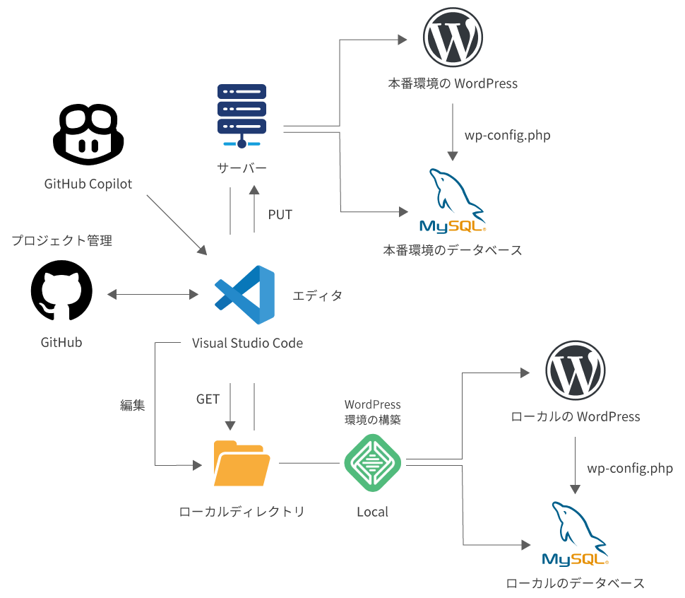 GitHub Copilot の支援を受られる VS Code による一元管理が可能です。