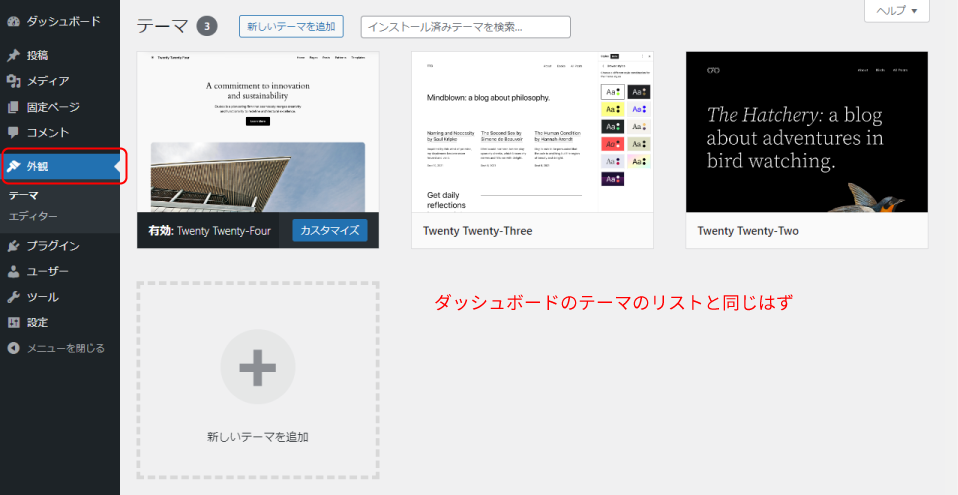 各テーマを構成するファイルが上記のディレクトリに入っています。