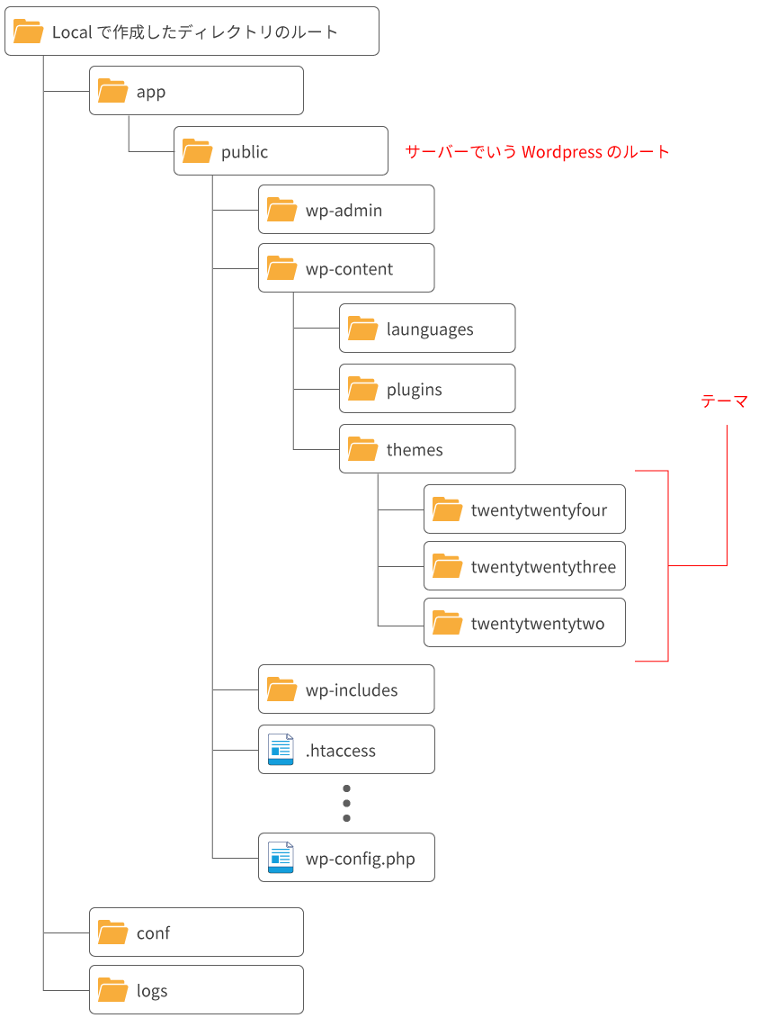 Local で作ったローカル環境では Local で作成したディレクトリのルート/app/public