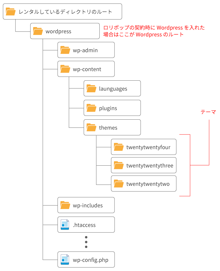 この場合はサーバーのルート/wordpressが WordPress のルートになります。
