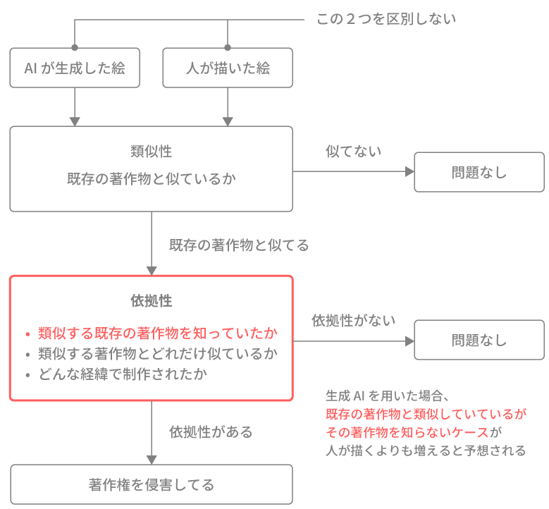 生成 AI 利用において、本当にこの場合を依拠性はないとみなしてよいのか、というのは当時かなり疑問に思っていました。