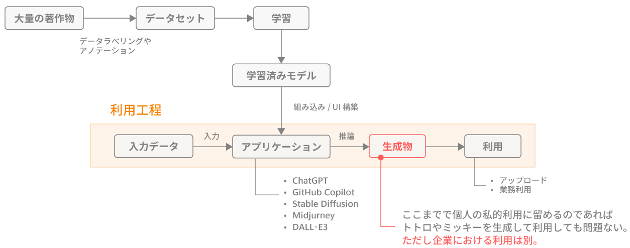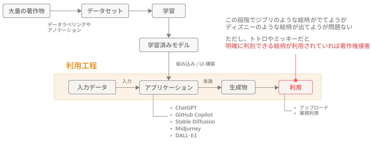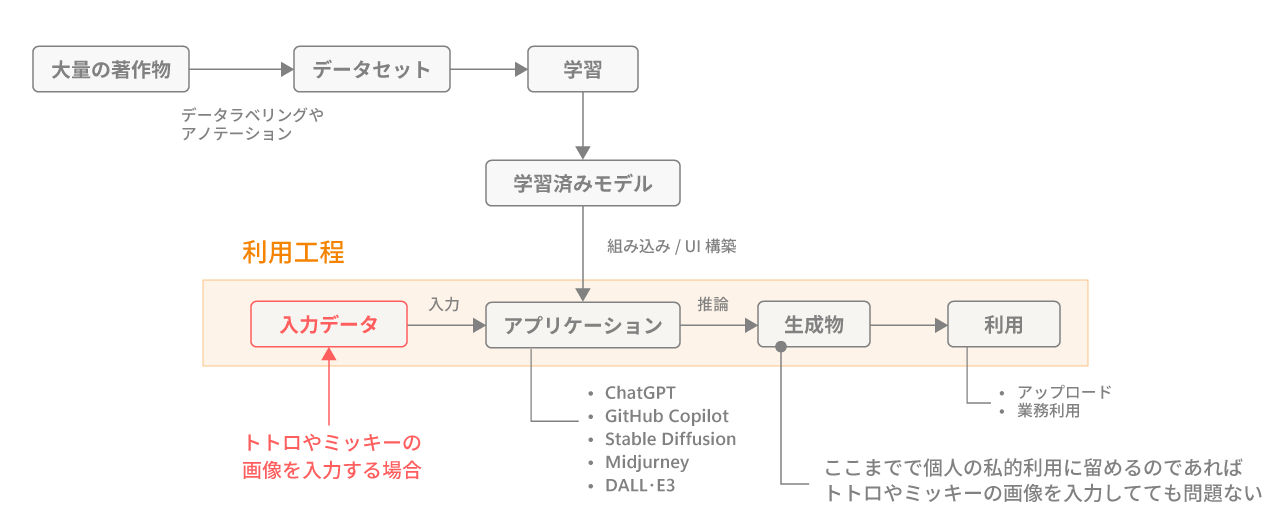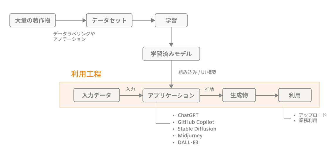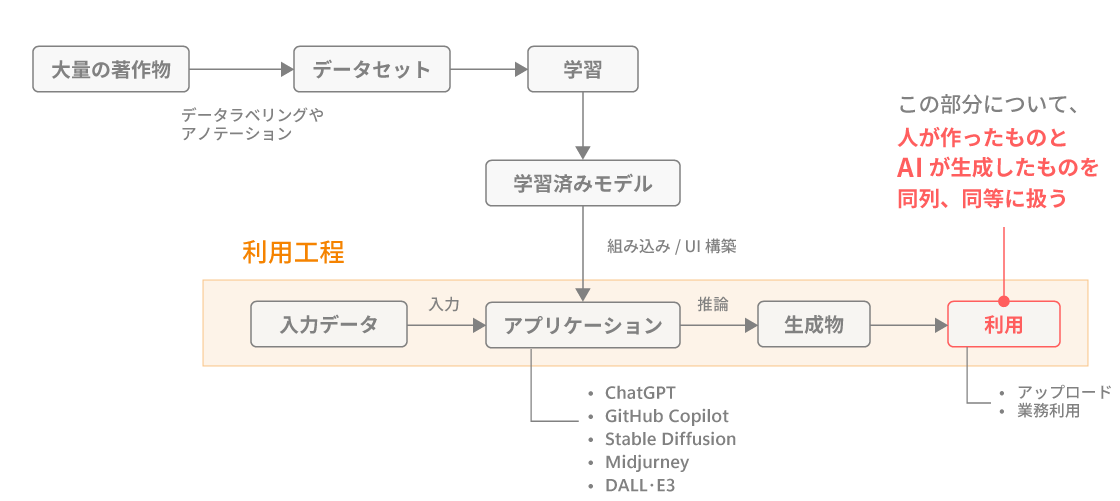 「AI と著作権」に明記されているのは下記のプロセスです。